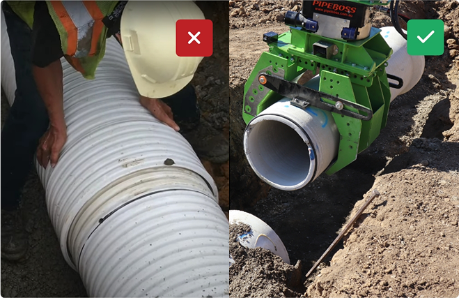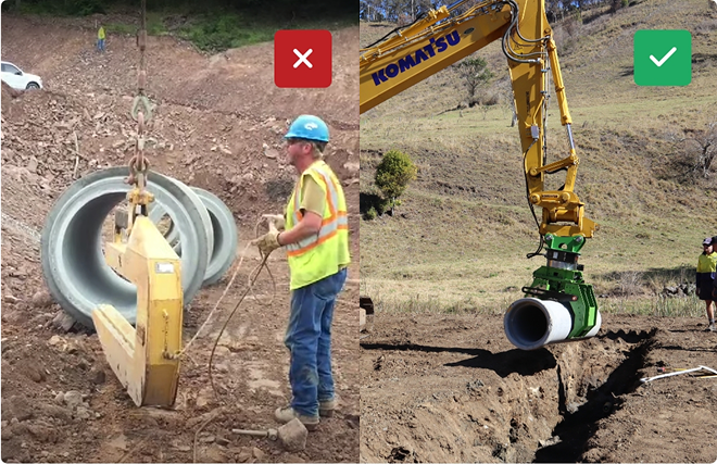 Improve on-site safety and speed during pipe installation in tight urban or remote environments. PipeBoss minimizes manual handling and allows precise pipe placement, even in confined trenches.